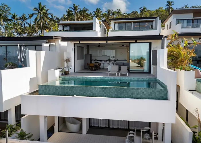 Located at a distance of 4.2 km from Samui Water Park Pink Elephant, the 4-bedroom Tropical Sunrise - Seaview - Perfect For Families Villa provides access to an infinity swimming pool. Featuring a terrace, the accommodation is situated approximately 10 minutes by car from High Park Koh Samui.